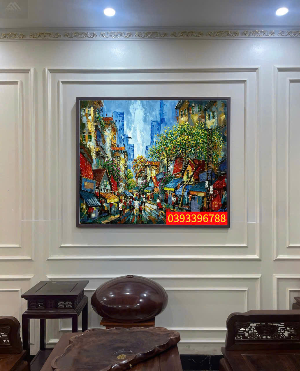 Phòng khách là vị trí lý tưởng nhất để treo tranh phố cổ. Nên treo tại bức tường chính, độ cao vừa tầm mắt, tạo không gian ấm cúng, sang trọng và giàu tính nghệ thuật.